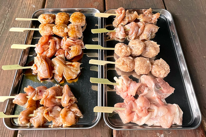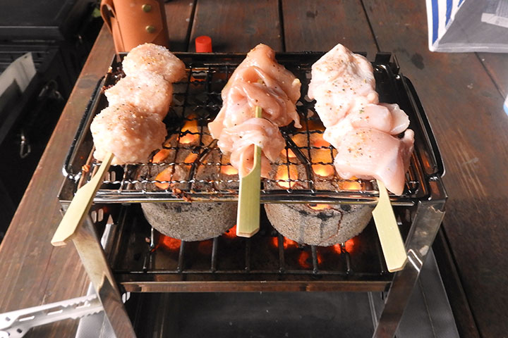 イオンで買った鶏肉を串に刺して焼き鳥。