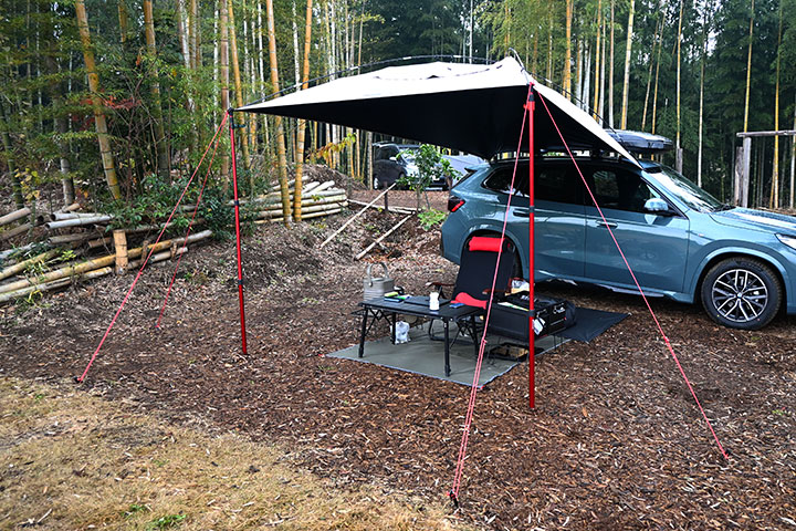 隣のサイトとは、竹の垣根で仕切られていて、さらに左右のサイトは空いていたので、