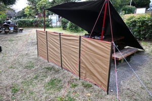 FIELDOOR カーサイドタープ 遮光タイプ & テンマクデザイン 陣幕ミニ TCを試し張り。